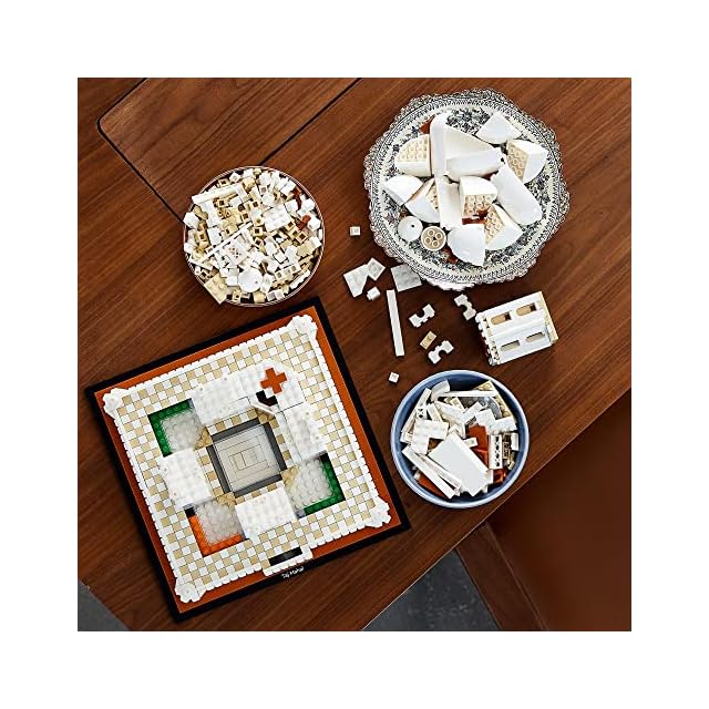 ムガル帝国第5代皇帝シャー・ジャハーンと愛妃ムムターズ・マハルの墓石が安置された玄室や、2つの模棺が安置された中央の廟本体、アーチ形のイーワーン、中央の丸屋根、4つずつ配された小楼と尖塔などを、レゴブロックで美しく再現できます。
