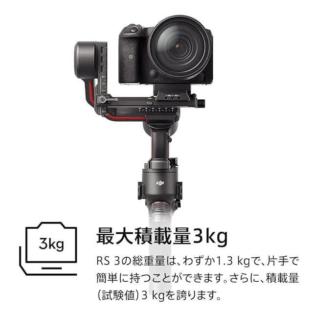DJI RS 3 3軸ジンバル Canon/Sony/Panasonic/Nikon/Fujifilm製一眼レフ&ミラーレスカメラ向け 積載量3 kg 自動軸ロック 1.8インチOLEDタッチ画面 動画撮影用プロ向けスタビライザー