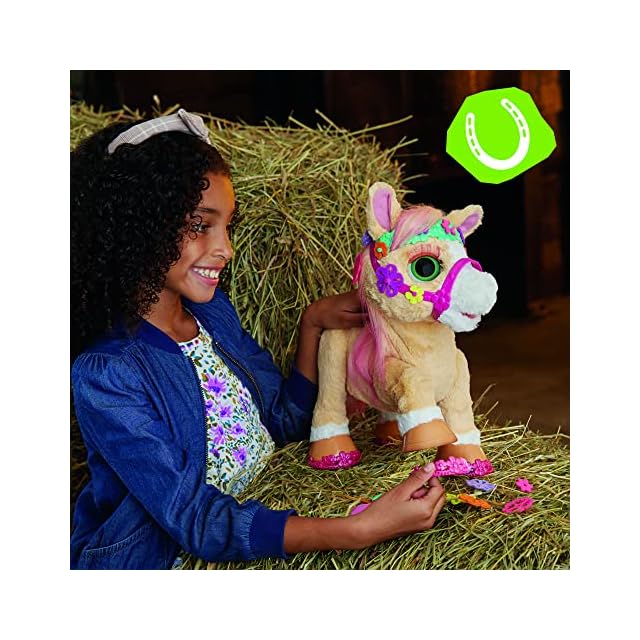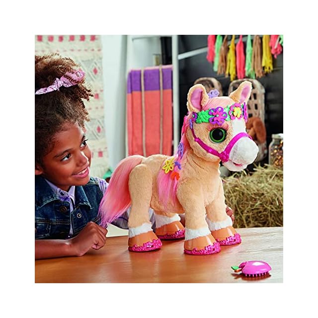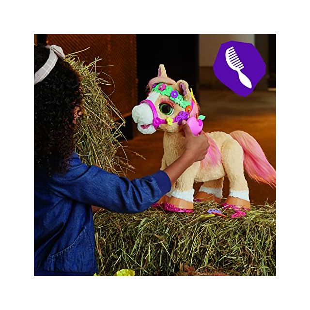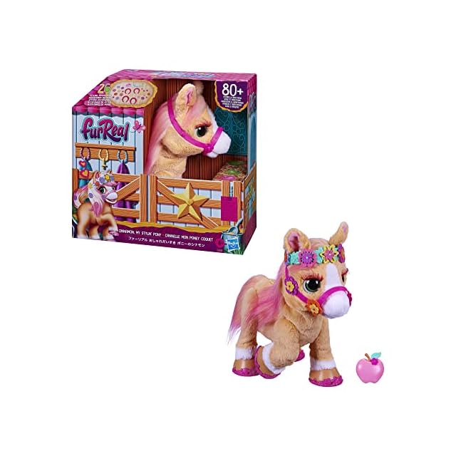ハズブロ(HASBRO) ファーリアル おしゃれだいすき ポニーのシナモン 動物 電動ぬいぐるみ 14インチ(35cm)のインタラクティブトイ 80種類以上の声と動きの組み合わせで反応する アクセサリー26個付き 女の子のおもちゃ 対象年齢4才以上 F4395 正規品