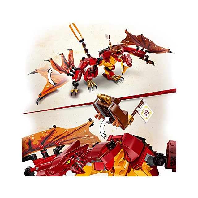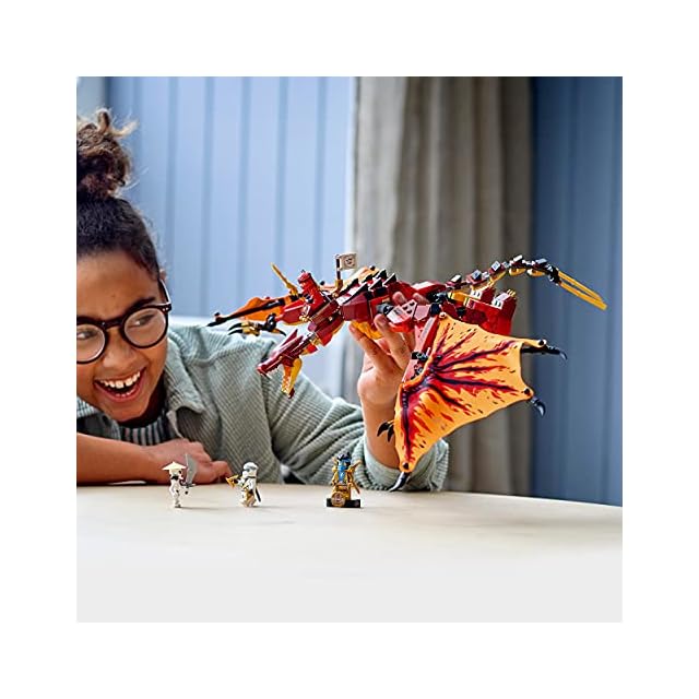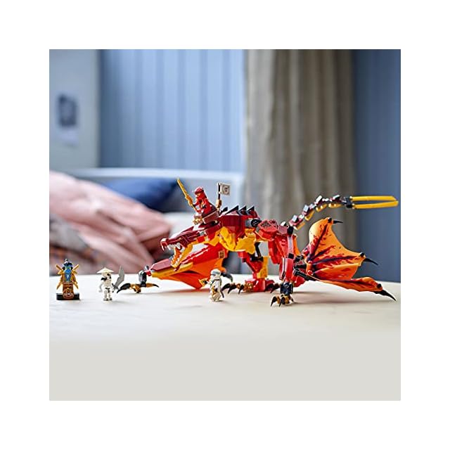 NINJAGO TVシリーズシーズン1から邪悪なウィプラッシュとの戦いに飛び込む、非常に可動性の高いレゴのレンガ造りのドラゴンのおもちゃが特徴です。