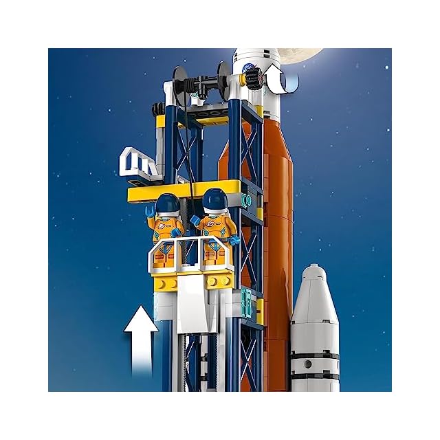 豊かな創造力のために – 打ち上げ台のエレベーターを動かして、宇宙飛行士たちをタラップへ送り届けたら、観測所と打ち上げセンターのロケット発射準備を想像しながら遊べます。