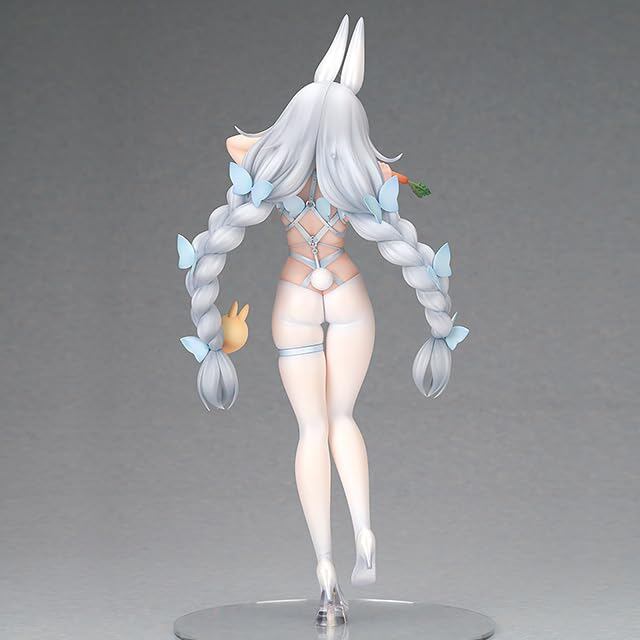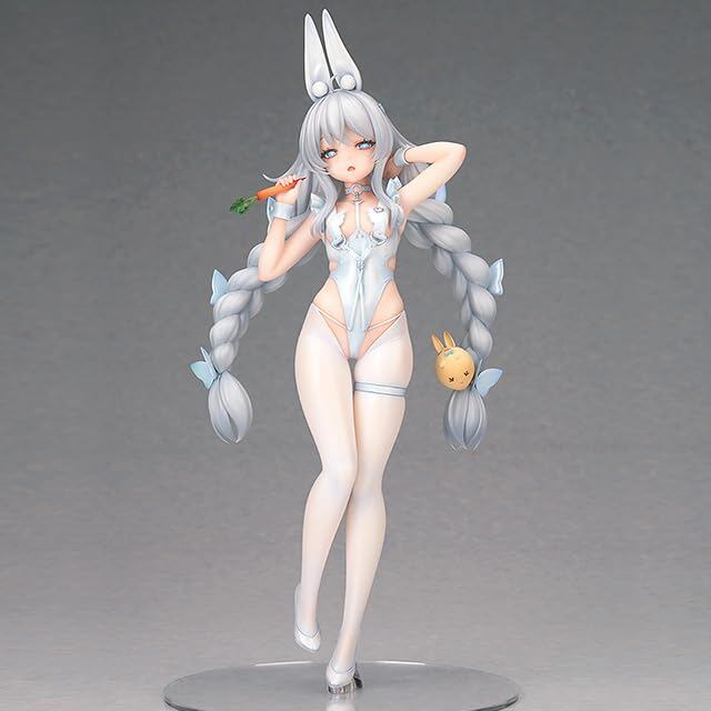 原型:槙尾宗利彩色:星名詠美『アズールレーン』より、“ル・ラマン”が登場!「昼寝好きのラピヌ」のバニースーツ姿で立体化しました。怠け者の彼女らしい眠たそうな表情で、大胆に露出した衣装を着こなす姿が魅力的な仕上がりです。ツヤっとした光沢があるバニースーツと、淡いシャドーにより瑞々しさを感じる肌など豊かな質感表現も見所。編み込まれた毛束やうさ耳をつけたマスコット、右手に持った人参も細やかに造形しました。パーツの差し替えにより「ウインク顔」が再現可能!「よだれ」再現シール、「ハートクッキー」パーツも付属します。