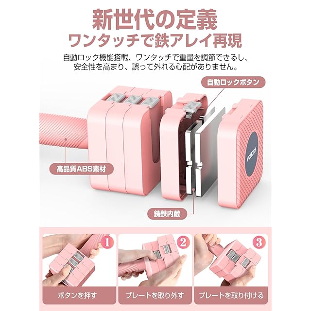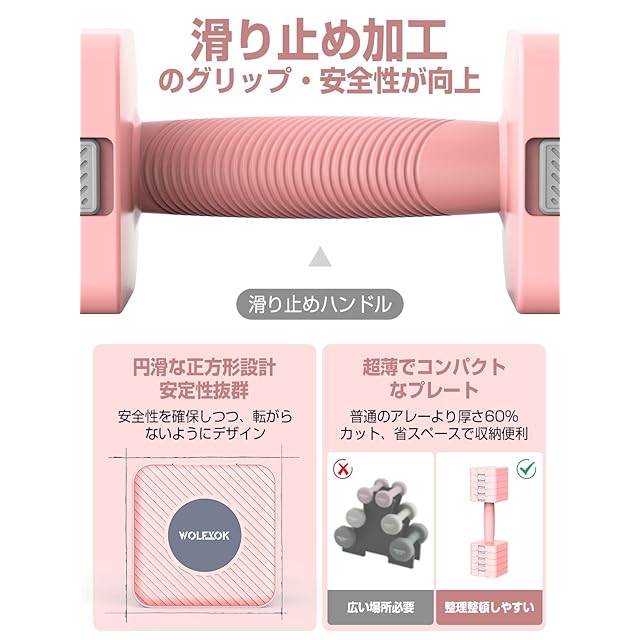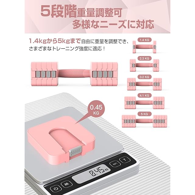 ✅【プロ品質と多機能トレーニング】このWolfyok fitness可変ダンベルセットは、複数の固定重量製品セットの代わりに使用でき、収納スペースを節約します。✅家庭での使用に非常に適しており、さまざまなトレーニング動作をサポートし、家族のさまざまなトレーニングニーズを満たします。また、騒音も少なく、床に置いても床を傷つけにくく、周囲の人に迷惑をかけないので、家庭環境での使用に適しています。コストパフォーマンスが高いです。特に多機能性を追求するお客様に適しています。✅ユーザーのフィードバックに基づいて開発されており、ダンベルセットの重量は 1kg から 5kg の間で自由に調整することができ、自分に合った重量でトレーニングを行うことができ、徐々に負荷を増やし、個別化されたトレーニングニーズを満たすことができます。✅初心者でも簡単にトレーニングを行うことができ、怪我をすることなく、続けやすいです。この多機能ダンベルは耐久性と安全性が非常に高く、初心者に好まれており、ジムや自宅でのトレーニングにも適しています。ピンクは特に可愛い女の子にぴったりです!