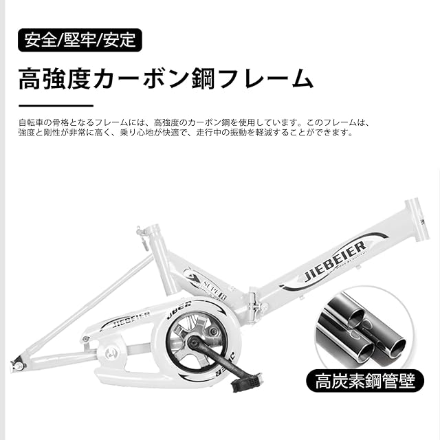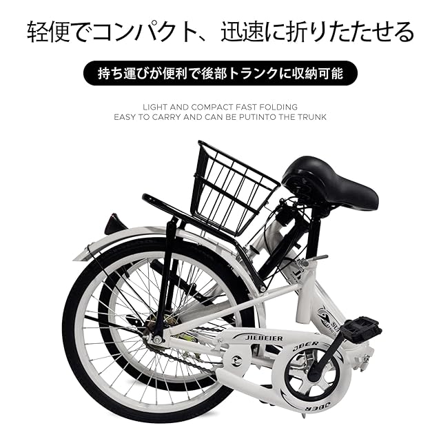 折りたたみデザイン:この20インチ折りたたみ自転車は、瞬時に折りたたむことができ、コンパクトなサイズになります。そのため、持ち運びや収納に非常に便利です。車や公共交通機関での移動時にもスムーズに携帯できるので、場所を選ばず自転車を利用したい方に最適なアイテムです。
