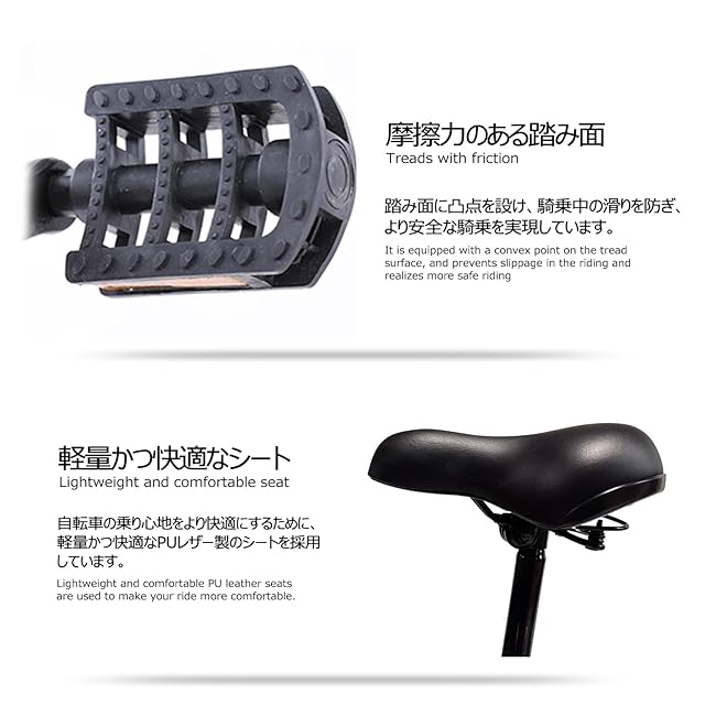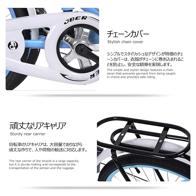 便利なアクセサリー:自転車には、便利なアクセサリーが付属しています。例えば、自転車の後部座席、チェーンカバー、スタンド、フェンダーなど、日常の利便性を高めることができます。さらに、ライトやカゴ、カギなどのアクセサリーは、自由に買って組み合わせて使用できます。