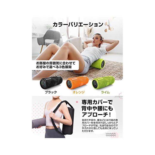 【業界トッ プの生産工場&プレゼントとして】弊社のフォームローラーの生産工場は業界トッ プで、高品質なものづくりを実現しています。シンプル操作で、お年寄り、初心者の方でも簡単に使うことができます。また、フォームローラーは収納袋付きで、コンパクトに収納でき、収納袋に本体を入れて背負うことで持ち運びにも便利です。自宅でのご利用ははもちろん、職場/ジム/公園などにも簡単に持ち運び可能です。又は、この電動筋膜ローラーは、両親や年長者へのホリデーギフトとしてもよく選ばれています~