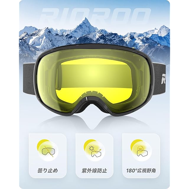 【OTG (メガネ対応) デザイン】RIOROOスキーゴーグルはOTGデザインが特徴で、大小のフレームメガネにフィットします。スキーゴーグルの下に度付きメガネを着用すると、近視でも路面がはっきりと見え、雪景色を楽しむことができ、スキーの楽しさと安全性が高まります。スキー、スケート、アルペンスキーに適しています。