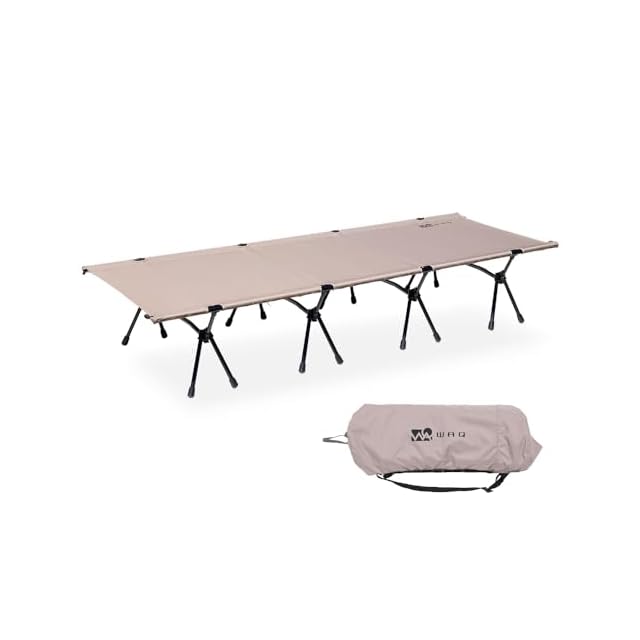 WAQ 2WAY WIDE COT 2WAYワイドコット コット キャンプ用コット キャンプベッド 幅広ハイロー 折りたたみ 幅80cm (BEIGE GRAY(ベージュグレー) - 600Dシート) | つむぎ屋