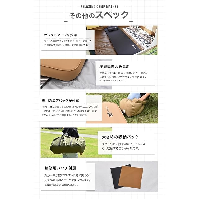 【キャンプでも睡眠を妥協したくないあなたへ】クッション素材には弾力性に優れているウレタンを使用。さらにひし形から横方向に打ち抜き方向を変更することでエアーによるマットの張りを損なわずウレタンの気持ちいい弾力を実現!【1人でたっぷり使えるワイド設計!】リラクシング キャンプマット シングルサイズ は大人1名がゆとりをもって使用できるサイズ感です。
