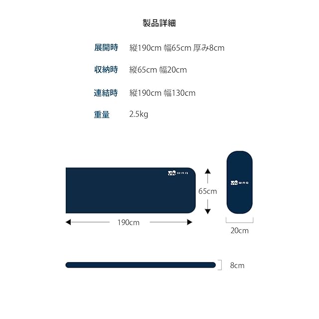 ✅【睡眠の妨害をシャットアウト】厚手の8cmで車内の段差や地面のデコボコを解消!底つき感もなく冬の気になる地面からの冷気もシャットアウトしてくれるので快適な睡眠を確保できます。✅【車中泊に最適】190cm×65cmでミニバンのフルフラットにぴったり収まるサイズ!マットを複数連結することができ2枚並べると車内を睡眠スペースとして広々使えますので車中泊に最適です!キャンプマットとしてもオススメです!