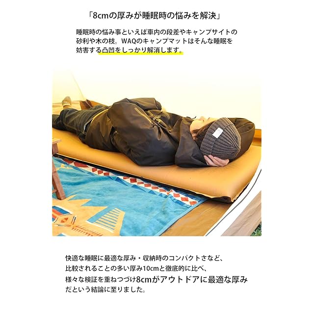 ✅【睡眠の妨害をシャットアウト】厚手の8cmで車内の段差や地面のデコボコを解消!底つき感もなく冬の気になる地面からの冷気もシャットアウトしてくれるので快適な睡眠を確保できます✅【車中泊に最適】190cm×65cmでミニバンのフルフラットにぴったり収まるサイズ!マットを複数連結することができ2枚並べると車内を睡眠スペースとして広々使えますので車中泊