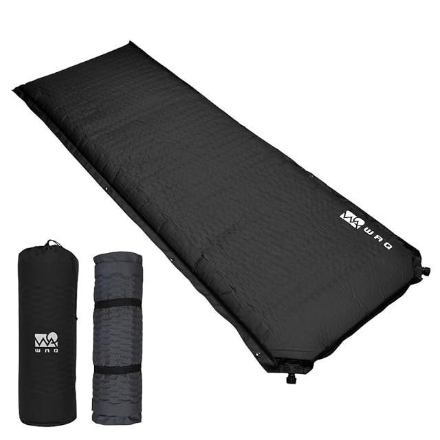 WAQ キャンプマット 車中泊マット 厚手 8cm コンパクト R値 6.5 特殊ウレタン 軽量 インフレーターマット (ブラック)