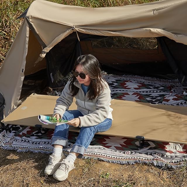 →【寝心地良いテントコット】①、ロータイプなので、テント内に使用しても狭く感じない!通気性に優れいて地面の凸凹の影響も受けにくい。 ②、収納ケース付で持ち運びも楽々、使用後はコンパクトに収納できます。③、一体式設計により脚部が崩れることはなく、設置後の安定性が抜群です。