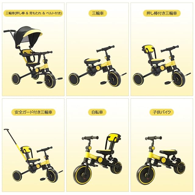 【7IN1多機能三輪車】適応年齡:1~6歲,本体素材:炭素鋼とEVA/重量:6.3kg/梱包サイズ:69×17×39cm耐荷重:25kg .※個体差やモニター環境により、色やサイズが若干異なる場合がございます。予めご了承の上ご注文くださいませ。子供用三輪車は6つのモードがあります。1. 三輪車(押し棒&背もたれ&ベルト付き) 2.押し棒付き三輪車 3.安全ガ一ド付き三輪車 4.自転車 5.子供バイク 6.三輪車 押し棒を外して通常の三輪車として、お使いいただけます 7.収納と展開できるステップ機能追加。コントロール力が身につけられ自転車に乗るための練習用最適です。子供バイクは足蹴り走行なので、乗っているうちに足腰が鍛えられ運動能力のアップが期待できます。