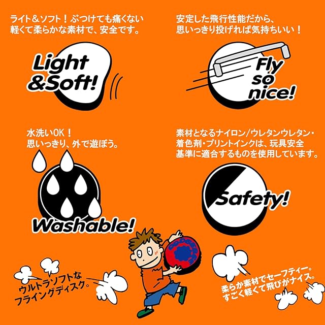 小学校で競技大会も行なわれている本格ディスク。ビーチサイドでも適合。水洗いもできる。