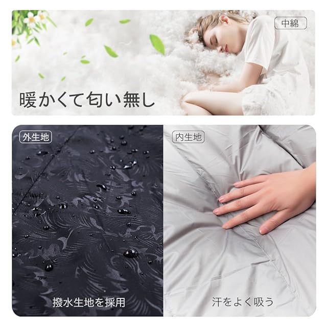 【肌触りが良く】内生地は綿素材で質感がよく、ふとんのように柔らかくて肌触りがよい、寝袋に入った時すぐに温かみを感じることができる。
