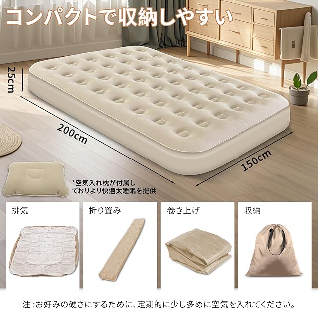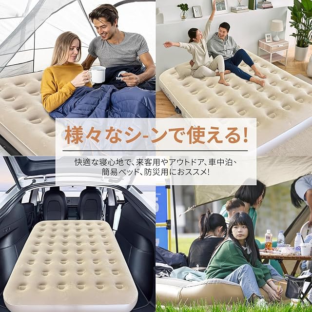 【様々なシーン活躍&セット内容】急な来客の時にも、おもてなしができます自宅用や来客用はもちろん、キャンプや旅行等のあらゆるシーンで快適にご利用いただけます。付属品:電動ポンプ、収納袋、リークリペアシール、日本語取扱説明書。ご使用中に問題やご不明な点がございましたら、お気軽にお問い合わせください。安心してご使用いただけます。