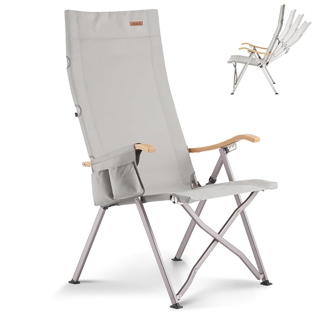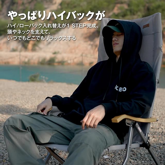 ICECO 4段階リクライニング式 ハイバックチェア 10年品質・耐荷重265KG・1600D座面・A7075アルミ合金フレーム・ハイ/ローバック切替可能 キャンプ 折りたたみ ガーデン 室内用(グレー) | つむぎ屋
