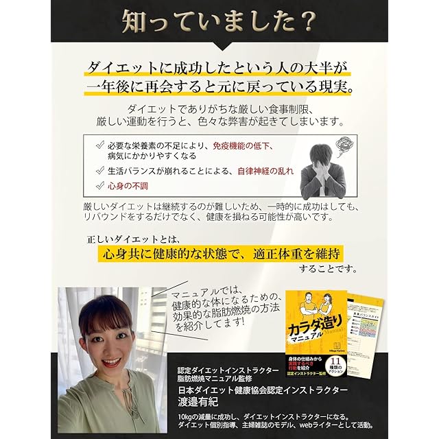 【認定ダイエットインストラクター監修シェイプアップマニュアル付】正しいダイエットとは心身共に健康的な状態で適正体重を維持する事と考えます。本書では身体の仕組と効果的にシェイプアップする方法を紹介。