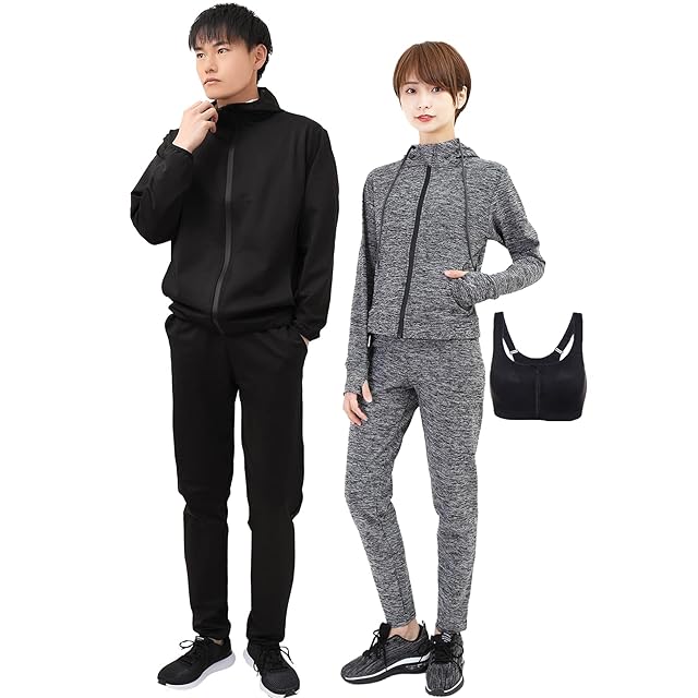 [Smarty] 世界代表選手も愛用&動画付 サウナスーツ レディース メンズ ダイエット 上下セット 3点セット 洗濯可 大量発汗 ランニング ウォーキング スポーツブラ付 エクササイズ (グレーLady's, XXL) | つむぎ屋