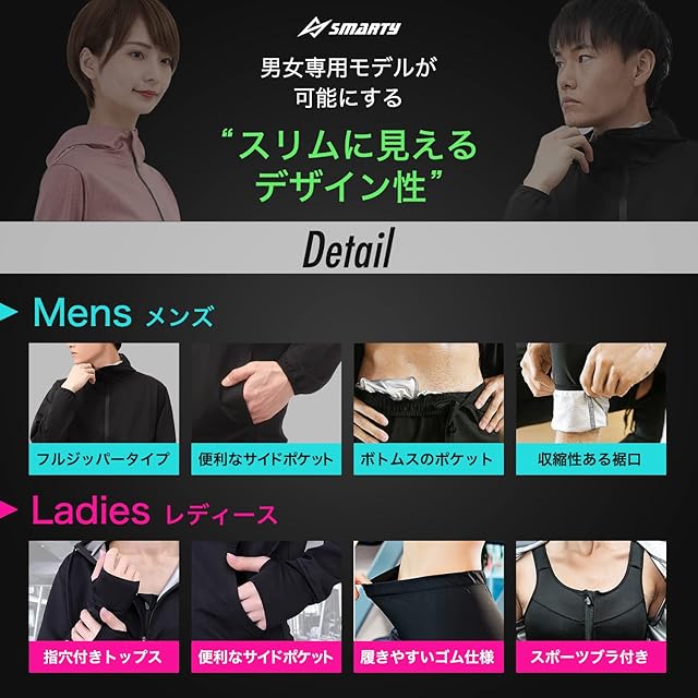 【デザイン性と機能性】着脱しやすいフルジップタイプ。スタイリッシュでおしゃれなデザイン性と機能性に優れたサウナスーツです。ちょっとした防寒着としてもお使い頂けます。