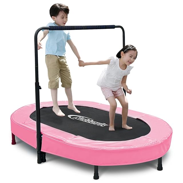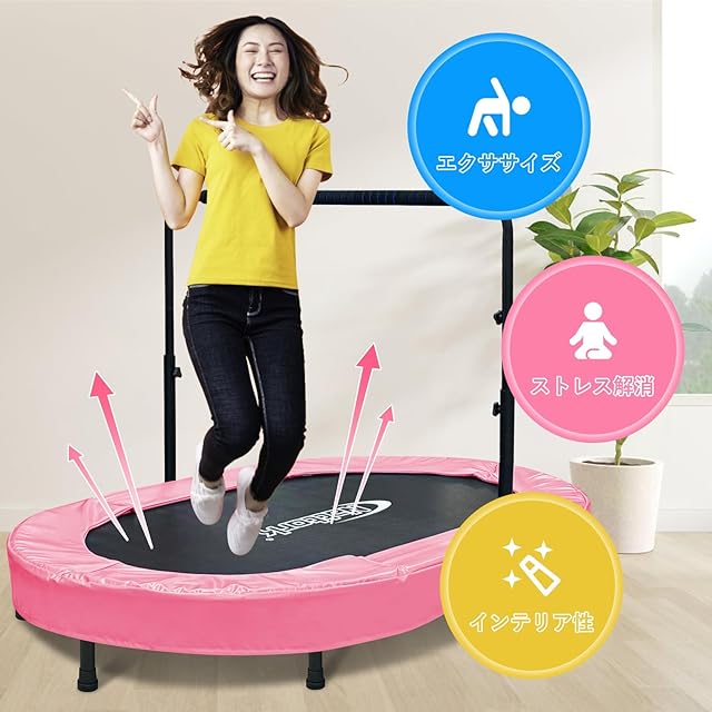 Nattork トランポリン 室内 子供用トランポリン 静音 トランポリン 大人用 大型 手すり五段階調節 二人で使える 折り畳み スプリング式 フィットネス ダイエット 室内遊具 家庭用 子ども成人兼用 ピンク ブラック | つむぎ屋