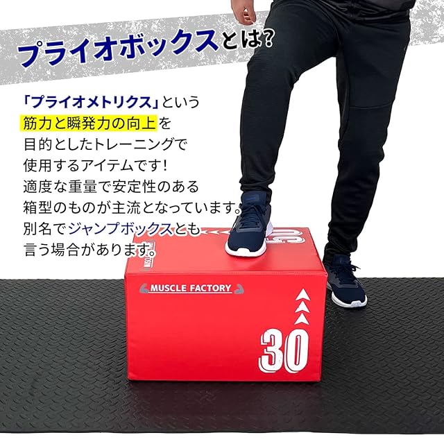 【プライオボックスとは?】プライオメトリクスという筋力と瞬発力の向上を目的としたトレーニングで使用するアイテムです。適度な重量で安定性のある箱型のものが主流となっています。別名でジャンプボックスとも言われます。