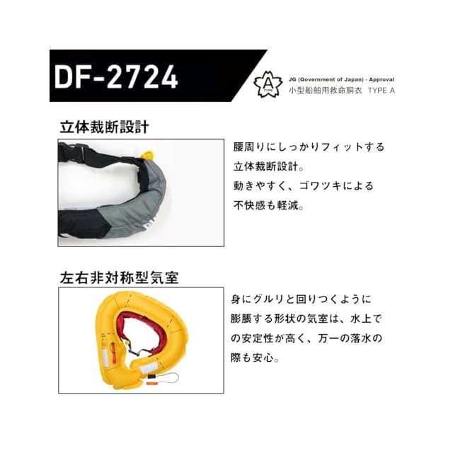 膨脹時にはO字型の気室が飛び出し、安定した浮遊姿勢が取れる