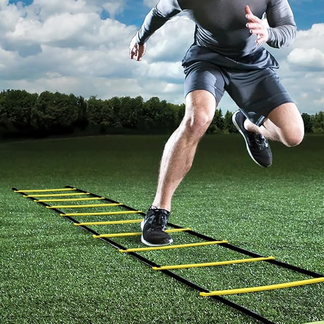 連結可能ボタン付き:本トレーニングラダーの全長は約9mで、室内などのスペースが限られた場所でも楽しく有酸素運動が行えます。それに連結可能ボタンで複数のを繋げることもでき、自分に合った距離で練習可能です。