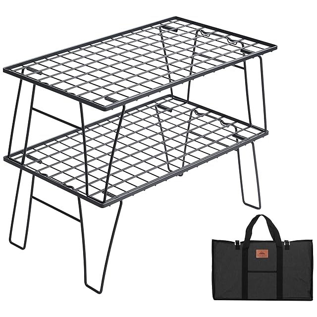 【ある時はラック、ある時はテーブルと、マルチに使える】ギアボックスや小物類を置くのに便利で、2段重ねにすれば、上段に2バーナー、下段に調理器具や食材をおいて、ロースタイルのキッチンカウンターとしても使えます。ロースタイルなキッチンシステムとしても使える。下段があると食材も置けて何かと便利。さらに専用オプションのテーブル用天板を購入すれば、ローテーブルに早変わり。
