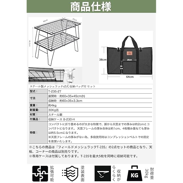商品内容:フィールドメッシュラック単品(※収納バッグが付属されておりませんので、ご注意ください)