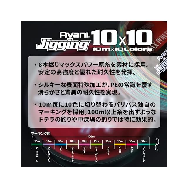 VARIVAS(バリバス) PEライン アバニ ジギング10×10 マックスパワーPE X8 200m 0.6号 14.5lb 8本 10色