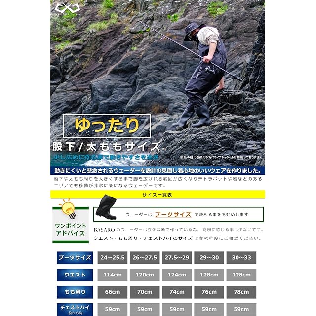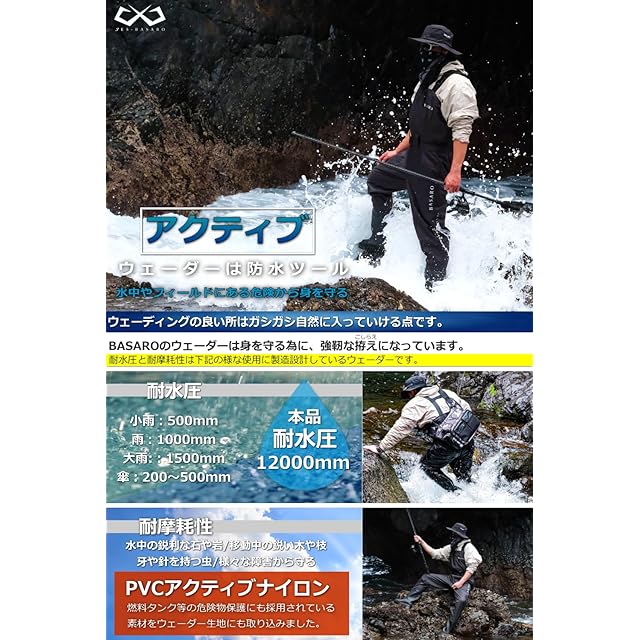 透湿性のあるBASAROアクティブナイロンを使用したウェーダーです。透湿性を上げすぎると防水性が損なわれる為、ある程度の透湿性を持たせた防水ツールです。どの様な体格の方でも着心地が良い様に生地を立体裁断し縫製しておりますので、長時間のウェーディングでも疲れにくい事が大きな特徴です。またウェーダー内部はインナーメッシュを搭載しておりますので、脱ぎ着もストレスなく行う事が可能です。 BASAROアクティブナイロンは非常に撥水性能も高いので持ち運ぶ際の水滴等はサッと払うだけで落とす事ができます。ソールタイプはラジアル/フェルトをご用意しております。ブーツサイズ S:24-25.5cm M:26-27.5cm L:27.5-29cm XL:29-30cm XXL:30-33cmをご用意しております。基本的にウェーダーはブーツサイズでお選び頂く事をお勧めしております。