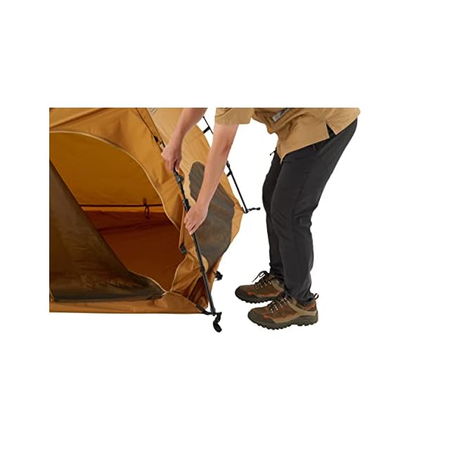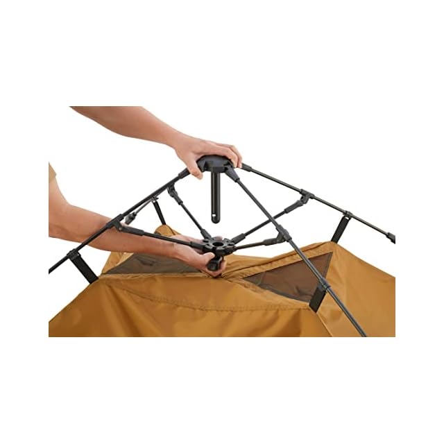 【簡単設営】フレーム上部のハブを差し込み、フレーム脚部を伸ばしてロックするだけでインナーテントの完成。