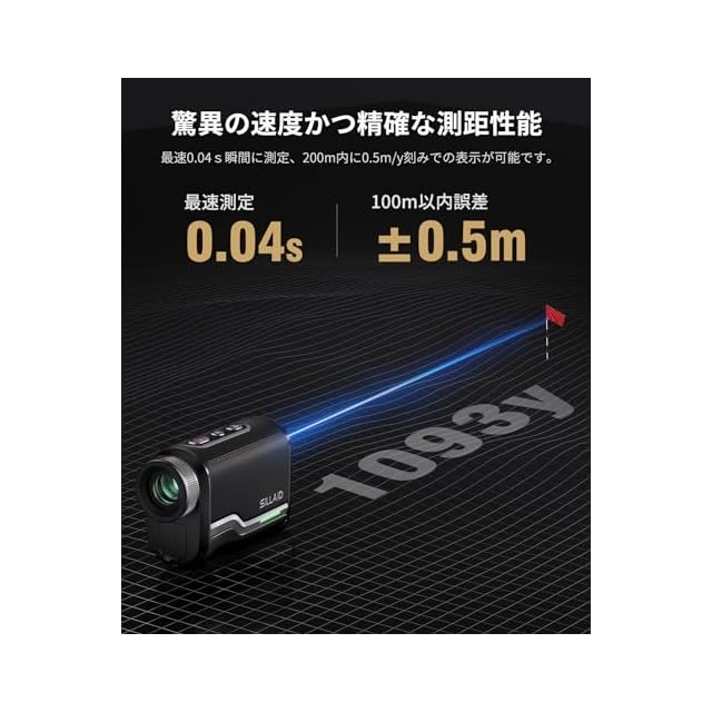 SILLAID ゴルフレーザー距離計 VOYAGE 3点間測定 最速0.04s測定 高透過レンズ 高低差測定ON/OFF 6.3倍望遠 1093yd対応 距離測定器 距離計測器 ゴルフ スロープモード ピンロックモード 競技対応 充電式 IP54防塵防水 専用ケース付き(ブラック) | つむぎ屋