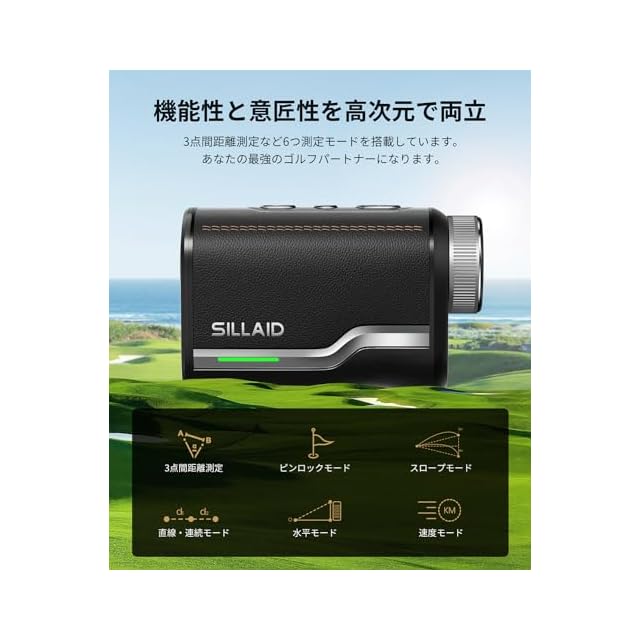 【SILLAID独自の光学モジュール】広大な視野と握りやすいサイズ感を両立させるために、SILLADは製品の品質と快適な操作を高めることに注力しており、最新の技術とデザインを駆使して独自の光学モジュールを開発しました。優れた光学性能を提供しながら、サイズは大きすぎなく男性の手にも女性の手にも優しいです。親指が当たる部分に滑り止めが仕上げる上、より繊細な感触を持つ耐摩耗性に優れた多層塗装UVを施したなど細部までこだわりを詰め込みました。全てのゴルフ愛好者に質の高いゴルフ体験を提供することを目指しています。