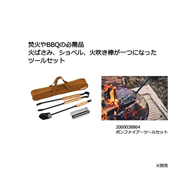【おすすめ】地面への熱の影響を軽減するため、「ファイヤープレイスシート(別売り)」と一緒にご使用ください。ダッチオーブン使用時は「ダッチオーブンスタンド(別売り)」を必ずお使いください。