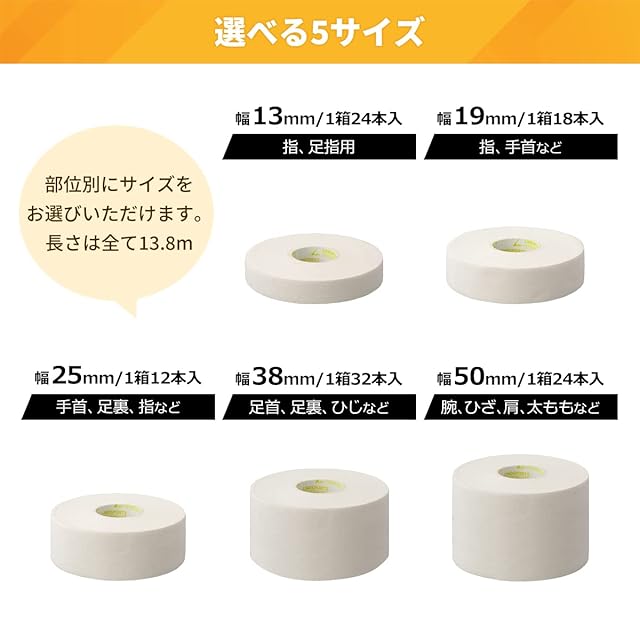 テープ種別:固定テープ・非伸縮テープ(ホワイトテープ)