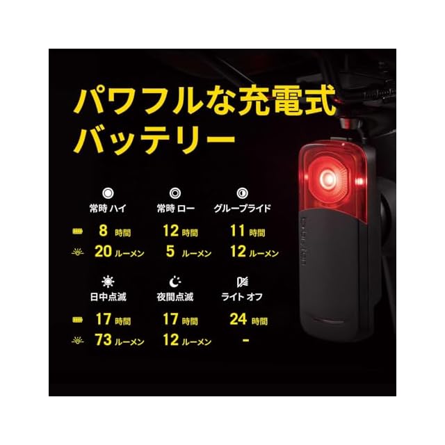 ✔【長いバッテリー稼働時間】 Gardia R300Lは、効率的なレーダー電力制御により、長い稼働時間を実現しました。昼間の点滅モードでは17時間、常時モードでは12時間持続します。バッテリー残量はサイクルコンピュータおよびアプリに送信され、簡単に確認できます。充電ポートにはUSB Type-Cを採用し、日常使いでの利便性を確保しています。