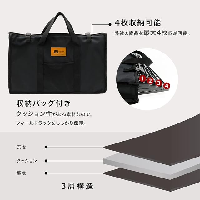 【収納袋付き】 傷や緩みに強い900Dポリエステル製、小物入れや生地の厚めの設計になっております。厚めのクッション入りで、フィールドラックをしっかり守ります。とても便利で長く使えます。