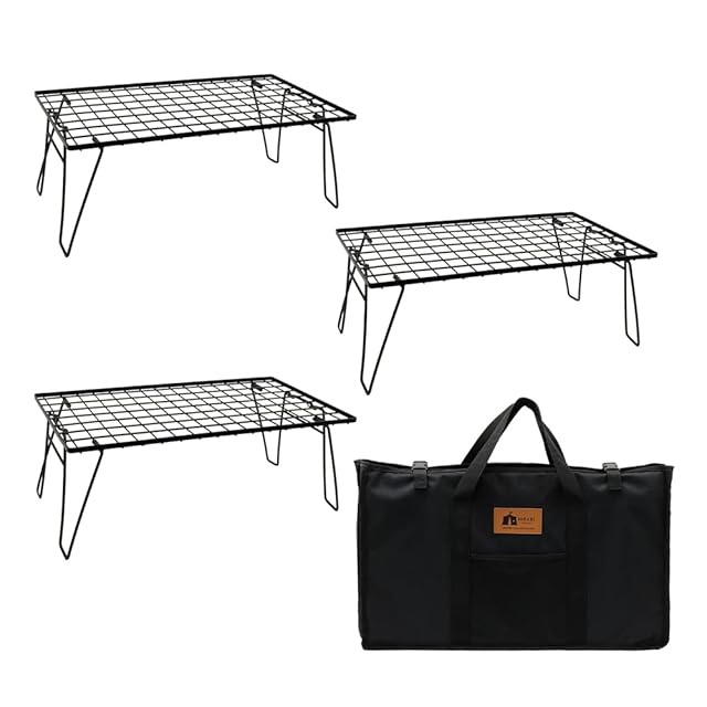 HIBARI フィールドラック キャンピングラック 3個セット 収納ケース付き マットブラック キャンプ収納 コンパクト アウトドアワゴン アウトドアテーブル 折りたたみ テーブル ローチェアアウトドア キャンプテーブル (ラック3枚/収納ケース) | つむぎ屋