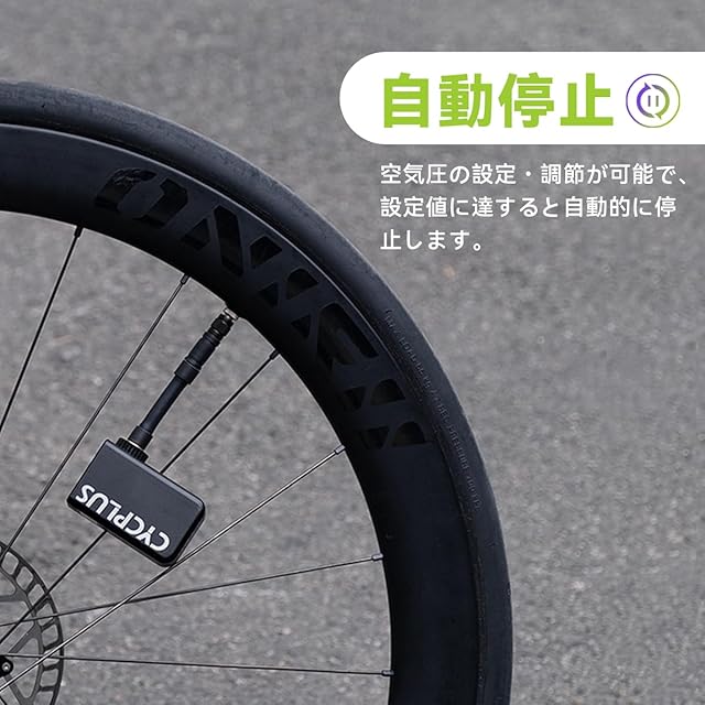 商品名:CYCPLUS 自転車 空気入れ 気圧表示 MAX 120PSI 携帯 電動ポンプ 携帯ポンプ 小型 電動空気入れ 米式仏式英式バルブ対応