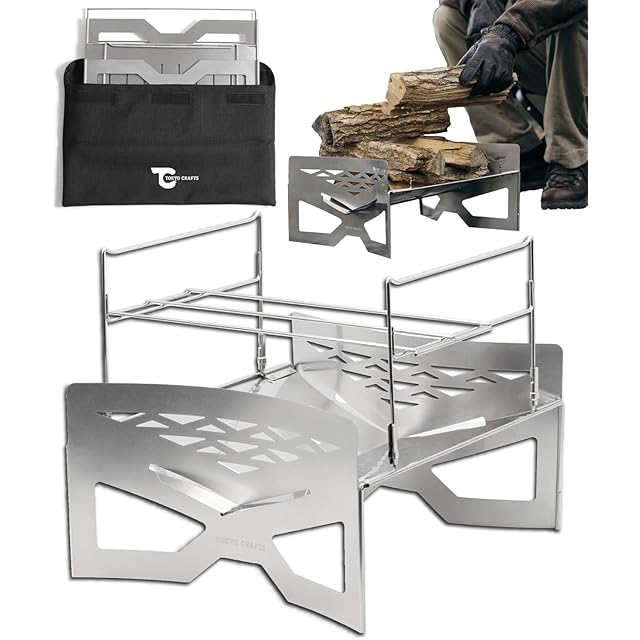 【組み立て簡単でストレスフリー】シンプルな構造でわずか数十秒で組み立て完了。専用の五徳付きで、初心者でも簡単に設置できる設計です。折りたたみ式の焚き火シートは、広げるだけで使用可能。テントサイトを火の粉から守り、環境保護にも貢献します。キャンプ場でのスムーズな設営を求める方にぴったりのセットです。