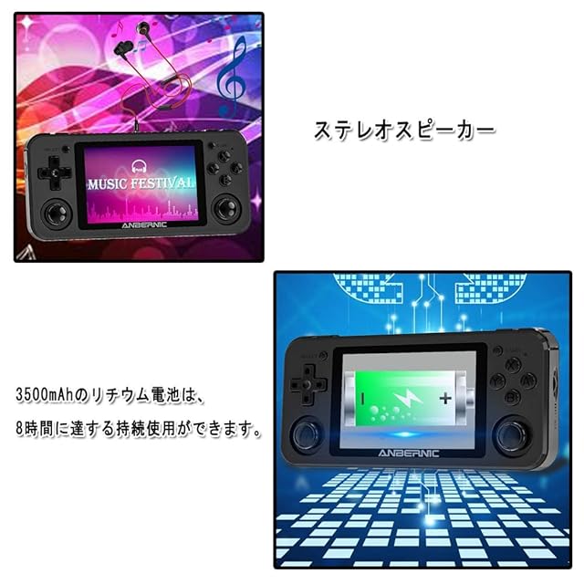 【アップグレードのハード】RGシリーズの3.5インチのOCA全密着のIPS画面を使用しています。高圧LEDバックライトを采用し、電力不足時にも机械の安定性を保ちます。スティックは3Dジョイスティックを採用します。ダブルL/Rボタン、PS1類の振動ゲームが楽しめます。