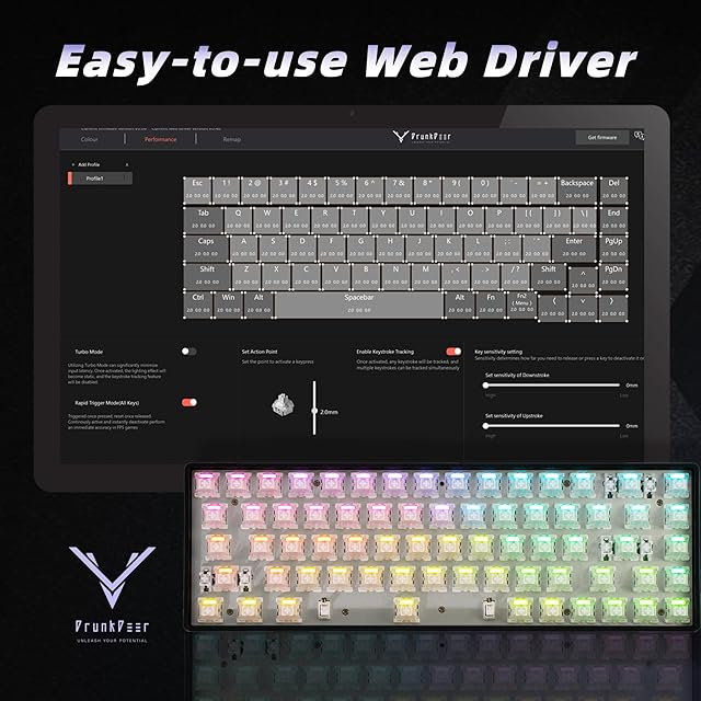 調節可能な作動距離 - DrunkDeer磁気リニアスイッチにより、0.2mmから3.8mmまでのカスタム作動が可能です。 調整可能な精度は0.1mmです。