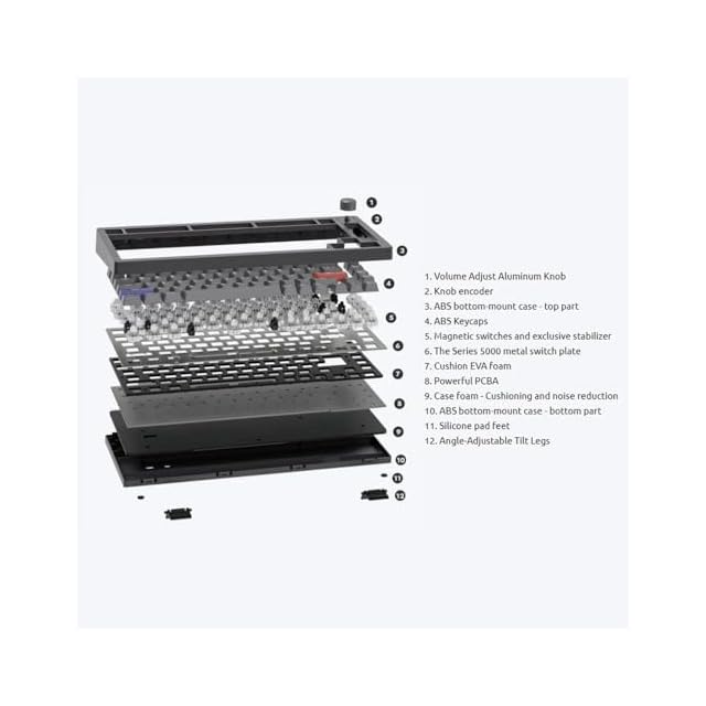 マグネットスイッチ - ホール効果で作動します。 金属リーフ/ピン/光学、その他の繊細な継手はありません。 キーの打鍵回数は1億回にも耐えられ、従来のキーストライキング寿命の2倍です。v