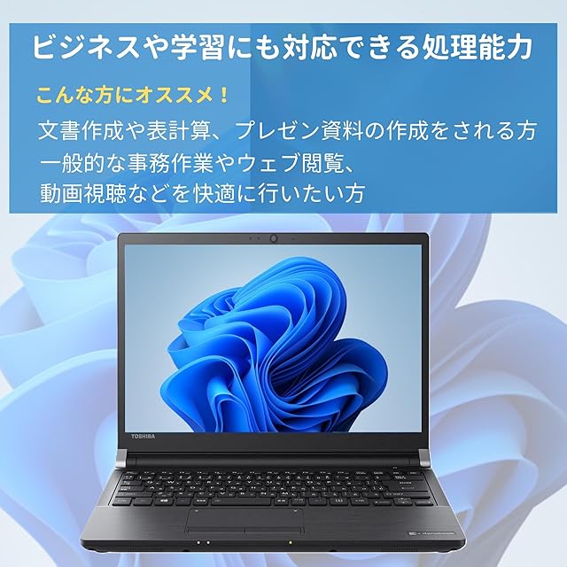 【整備済み品】東 芝 ノートPC R73 / 13型 / Win11 Pro/MS Office H&B 2019 / Core i5-6200U /wajunのWIFI/Bluetooth/HDMI / 8GB / 256GB SSD