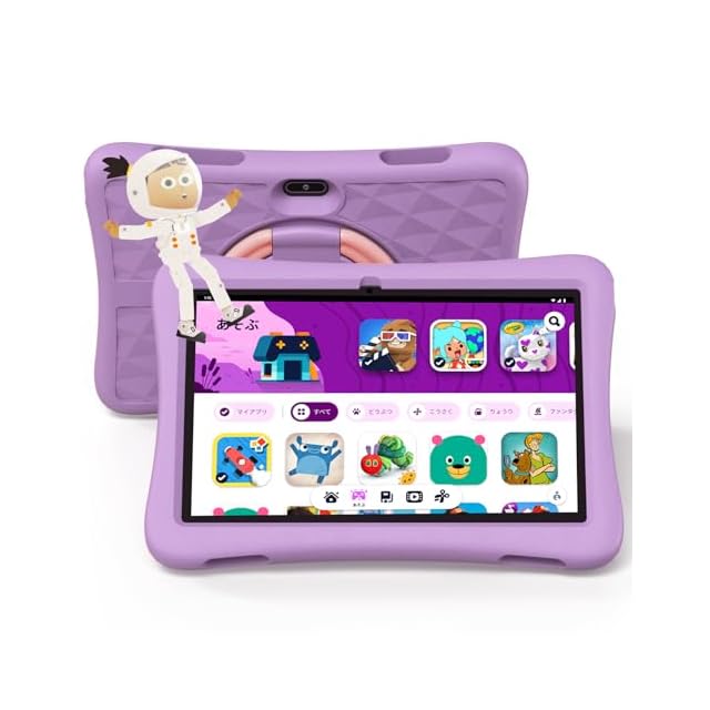 (キッズスペース対応、32GBメモリ)Android 14 タブレット 10インチ wi-fiモデル、6000mAh 、RAM 6GB、1.8Ghz、1.8m充電ケーブル 子供用 たぶれっと IPS、5G WiFi 6、Bluetooth 5.0、EVAの超軽量ケース付き、落下防止性能、日本語説明書付き-PlimPad Kids 10 Purple