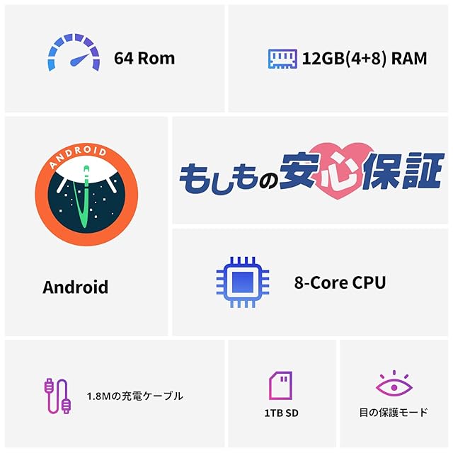 (8コアCPU、Android15)2025最新のAndroid15 タブレット 10インチ Wi-Fiモデル は、8コアCPU高速処理チップを、も搭載によりもっとスムーズな操作感が実現。 4GB RAM + 8GB仮想RAM、12GBの大容量RAMを搭載し、操作をよりスムーズに。本体の64GBのROMに加え最大1TBのmicroSDカードをサポート。オンライン授業、バーチャル学習、テレビ会議、事務作業などなどをストレスなくお楽しみいただけます。