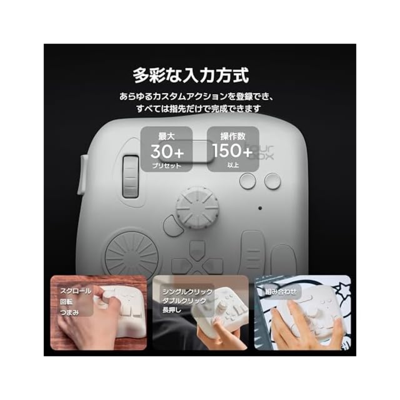 【数百種類の機能をカスタマイズ可能】ボタン11個とノブ、スクロール、ダイヤルを搭載しており、単独使用でのシングルクリック、ダブルクリック、長押し、または組み合わせであらゆる機能を設定できます。キーボードショートカットやTourメニューの登録、またマクロコマンドを設定してマウスの移動やドラッグ、テキスト入力も実行可能です。